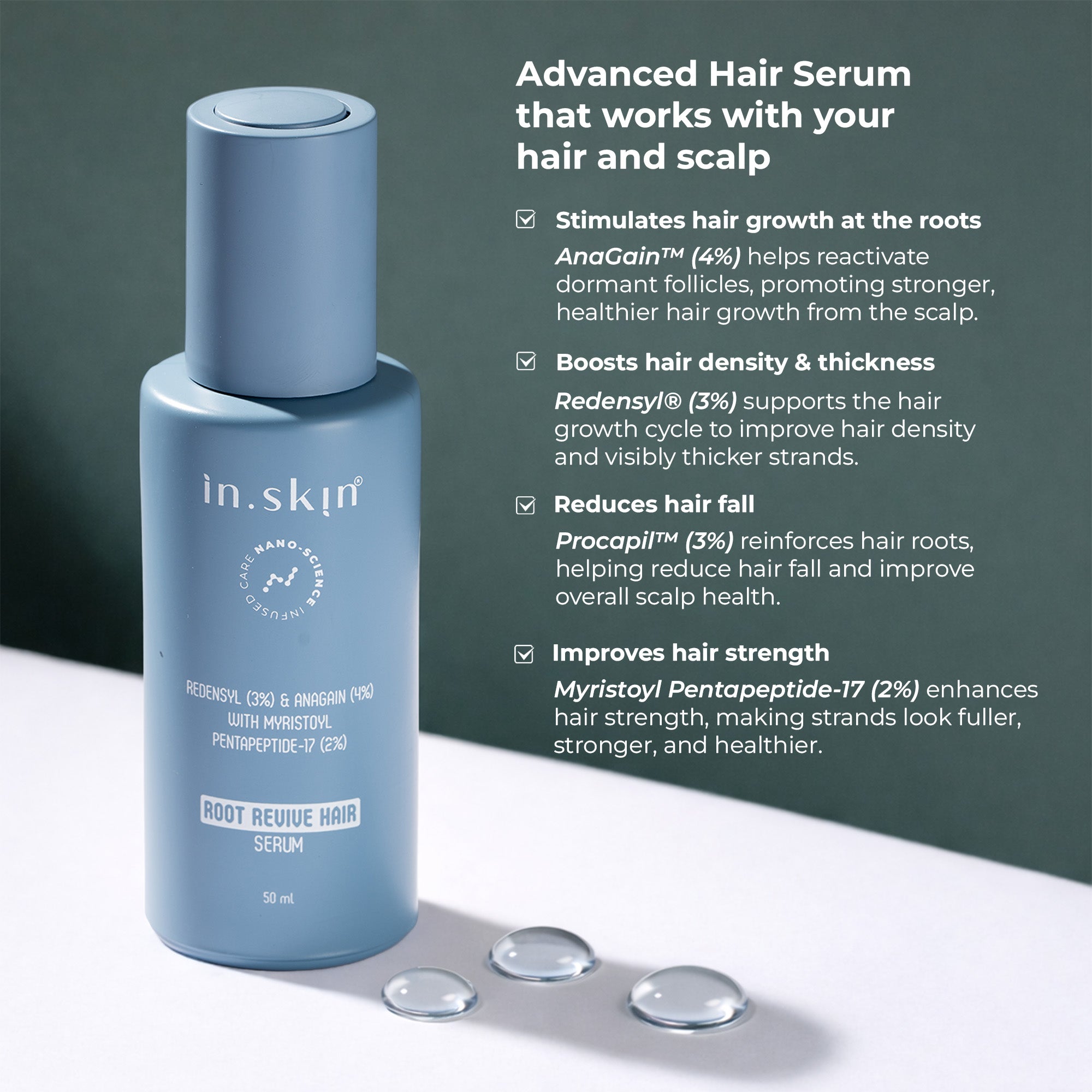 ROOT REVIVE HAIR SERUM with Myristoyl Pentapeptide-17 (2%), Redensyl (3%) & Anagain (4%)